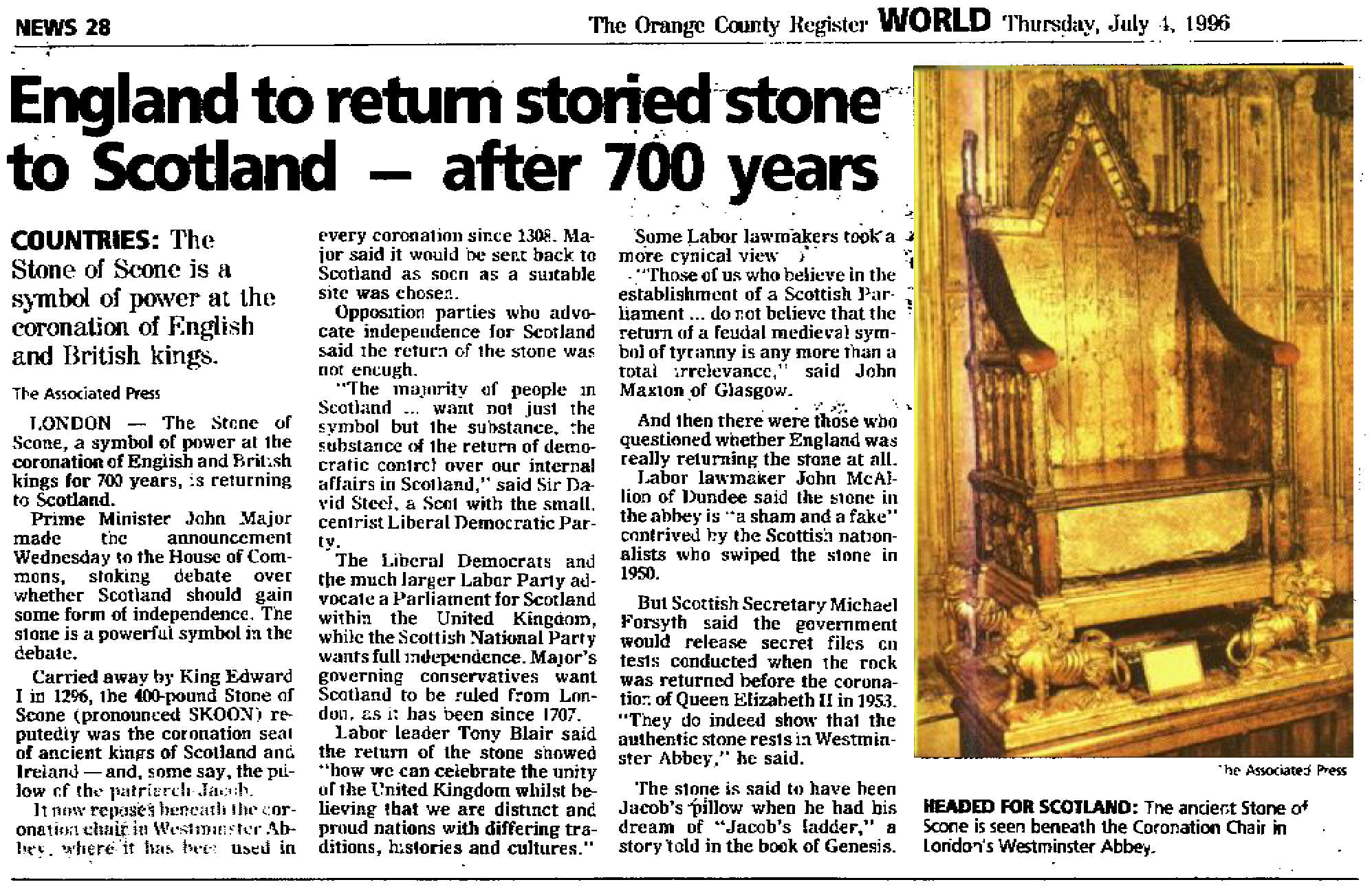Queen Elizabeth's descendants are traced back to the line of Jesus of the tribe of Judah... King Charles sits on Jesus' Throne... Now Jacob's pillow stone has been removed from England's Throne where it sat for 700 years... It has been moved to Scotland, opening the door for England's destruction...