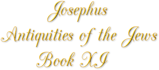 6. Now there was one of those Jews that had been carried captive who was cup-bearer to king Xerxes; his name was Nehemiah. As this man was walking before Susa, the metropolis of the Persians, he heard some strangers that were entering the city, after a long journey, speaking to one another in the Hebrew tongue; so he went to them, and asked them whence they came. And when their answer was, that they came from Judea, he began to inquire of them again in what state the multitude was, and in what condition Jerusalem was; and when they replied that they were in a bad state for that their walls were thrown down to the ground, and that the neighboring nations did a great deal of mischief to the Jews, while in the day time they overran the country, and pillaged it, and in the night did them mischief, insomuch that not a few were led away captive out of the country, and out of Jerusalem itself, and that the roads were in the day time found full of dead men. Hereupon Nehemiah shed tears, out of commiseration of the calamities of his countrymen; and, looking up to heaven, he said, How long, O Lord, wilt thou overlook our nation, while it suffers so great miseries, and while we are made the prey and spoil of all men? And while he staid at the gate, and lamented thus, one told him that the king was going to sit down to supper; so he made haste, and went as he was, without wishing himself, to minister to the king in his office of cup-bearer. But as the king was very pleasant after supper, and more cheerful than usual, he cast his eyes on Nehemiah, and seeing him look sad, he asked him why he was sad. Whereupon he prayed to God to give him favor, and afford him the power of persuading by his words, and said, How can I, O king, appear otherwise than thus, and not be in trouble, while I hear that the walls of Jerusalem, the city where are the sepulchers of my fathers, are thrown down to the ground, and that its gates are consumed by fire? But do thou grant me the favor to go and build its wall, and to finish the building of the temple. Accordingly, the king gave him a signal that he freely granted him what he asked; and told him that he should carry an epistle to the governors, that they might pay him due honor, and afford him whatsoever assistance he wanted, and as he pleased. Leave off thy sorrow then, said the king, and be cheerful in the performance of thy office hereafter. So Nehemiah worshipped God, and gave the king thanks for his promise, and cleared up his sad and cloudy countenance, by the pleasure he had from the king's promises. Accordingly, the king called for him the next day, and gave him an epistle to be carried to Adeus, the governor of Syria, and Phoenicia, and Samaria; wherein he sent to him to pay due honor to Nehemiah, and to supply him with what he wanted for his building.