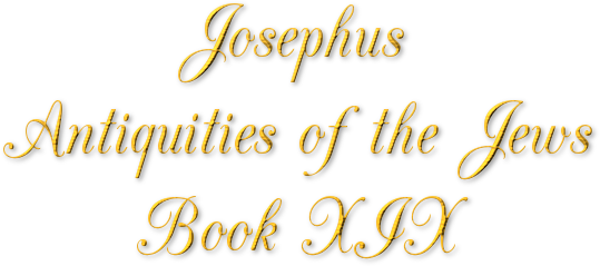 1. NOW this Caius did not demonstrate his madness in offering injuries only to the Jews at Jerusalem, or to those that dwelt in the neighborhood; but suffered it to extend itself through all the earth and sea, so far as was in subjection to the Romans, and filled it with ten thous and mischiefs; so many indeed in number as no former history relates. But Rome itself felt the most dismal effects of what he did, while he deemed that not to be any way more honorable than the rest of the cities; but he pulled and hauled its other citizens, but especially the senate, and particularly the nobility, and such as had been dignified by illustrious ancestors; he also had ten thous and devices against such of the equestrian order, as it was styled, who were esteemed by the citizens equal in dignity and wealth with the senators, because out of them the senators were themselves chosen; these he treated after all ignominious manner, and removed them out of his way, while they were at once slain, and their wealth plundered, because he slew men generally in order to seize on their riches. He also asserted his own divinity, and insisted on greater honors to be paid him by his subjects than are due to mankind. He also frequented that temple of Jupiter which they style the Capitol, which is with them the most holy of all their temples, and had boldness enough to call himself the brother of Jupiter. And other pranks he did like a madman; as when he laid a bridge from the city Dicearchia, which belongs to Campania, to Misenum, another city upon the sea-side, from one promontory to another, of the length of thirty furlongs, as measured over the sea. And this was done because he esteemed it to be a most tedious thing to row over it in a small ship, and thought withal that it became him to make that bridge, since he was lord of the sea, and might oblige it to give marks of obedience as well as the earth; so he enclosed the whole bay within his bridge, and drove his chariot over it; and thought that, as he was a god, it was fit for him to travel over such roads as this was. Nor did he abstain from the plunder of any of the Grecian temples, and gave order that all the engravings and sculptures, and the rest of the ornaments of the statues and donations therein dedicated, should be brought to him, saying that the best things ought to be set no where but in the best place, and that the city of Rome was that best place. He also adorned his own house and his gardens with the curiosities brought from those temples, together with the houses he lay at when he traveled all over Italy; whence he did not scruple to give a command that the statue of Jupiter Olympius, so called because he was honored at the Olympian games by the Greeks, which was the work of Phidias the Athenian, should be brought to Rome. Yet did not he compass his end, because the architects told Memmius Regulus, who was commanded to remove that statue of Jupiter, that the workmanship was such as would be spoiled, and would not bear the removal. It was also reported that Memmius, both on that account, and on account of some such mighty prodigies as are of an incredible nature, put off the taking it down, and wrote to Caius those accounts, as his apology for not having done what his epistle required of him; and that when he was thence in danger of perishing, he was saved by Caius being dead himself, before he had put him to death.