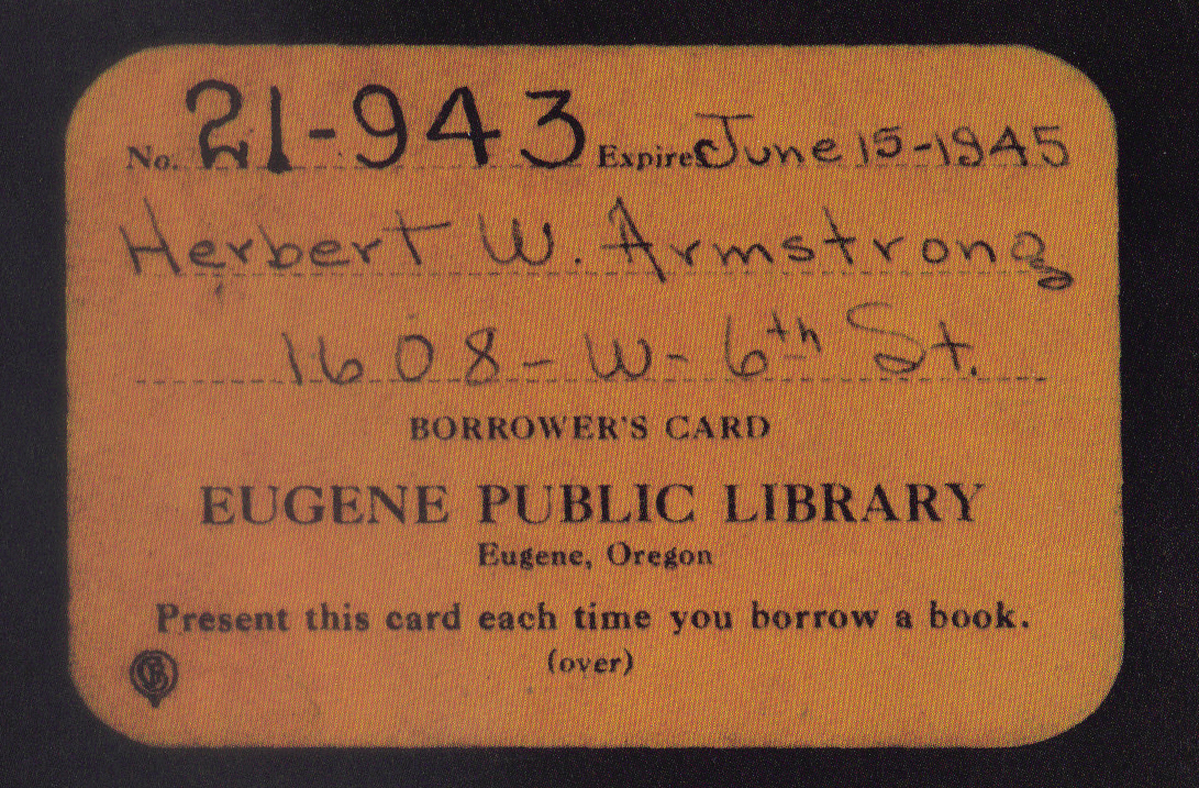 Originally, the mailing list was handwritten on two sheets of paper. The first few years Mrs. Armstrong kept this list. All copies of The Plain Truth were addressed by hand. Then, about the time we moved into the IOOF building, we picked up an antiquated, second-hand, foot-powered addressing machine, with which we could use the Elliott stencils.