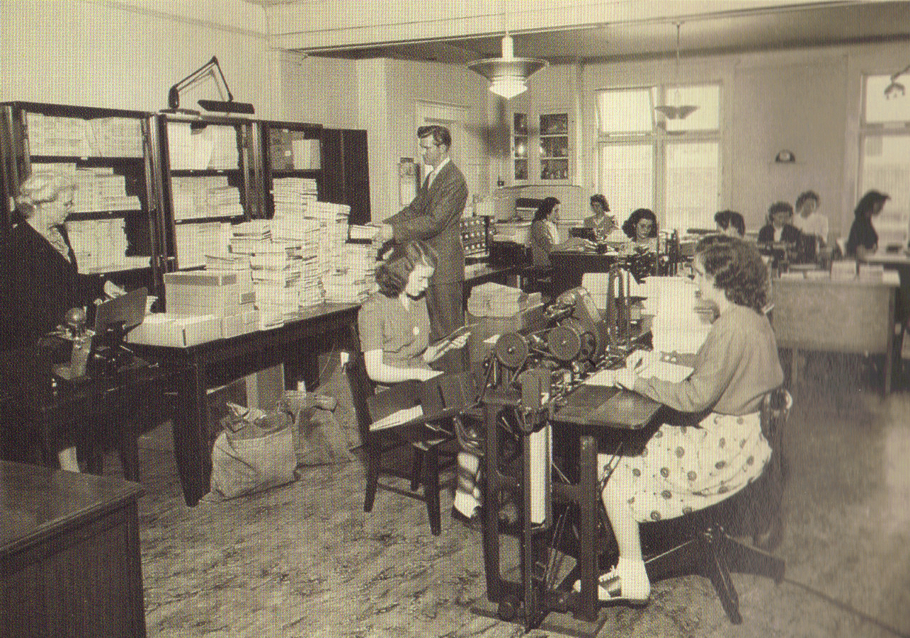 After October 1, 1945, when this superpower national-coverage nightly broadcasting began, our office staff at Eugene increased rapidly. The one office we had first occupied in the IOOF building expanded to four, with six times our original space, including one large general workroom. By this time I had an office manager in charge of the general workroom, and about nine girls. We had acquired equipment for mailing. Through the years, this type of equipment has been stepped up gradually, a step at a time.