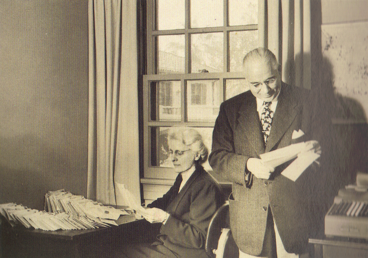 According to usual office standards, we might have thought we needed a better office, with sunlight and ventilation. We might have thought modern steel filing cabinets were a need. I was still using cardboard cartons, obtained free at the grocery store, as receptacles for keeping correspondence files. We might have thought that office desks to work on, if only secondhand, were needed. But we were able to work, these years, on a few old tables we found in our little, stuffy, $5-per-month office room.