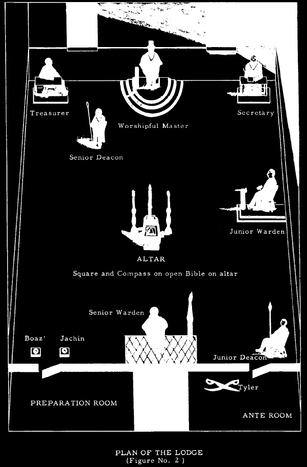 Before attending any meetings or taking any part in Masonic rituals, the candidate must be initiated. On his first visit to the Lodge, he is kept outside in the ante room (see Figure 2) while the first part of the meeting takes place. Neither he nor anyone else has a chance to know what is going on in the meeting because the door is closed and a guardusually with drawn swordis standing beside it.
