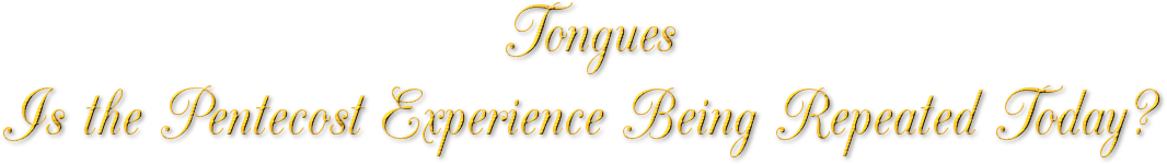Are the Pentecost MANIFESTATIONS being repeated today? Here is the PLAIN TRUTH about this burning question, plainly stated. Read every word. Is speaking in tongues the BIBLE evidence of the baptism with the Holy Ghost? Is this baptism for us today? What is the Bible teaching about TARRY MEETINGS?